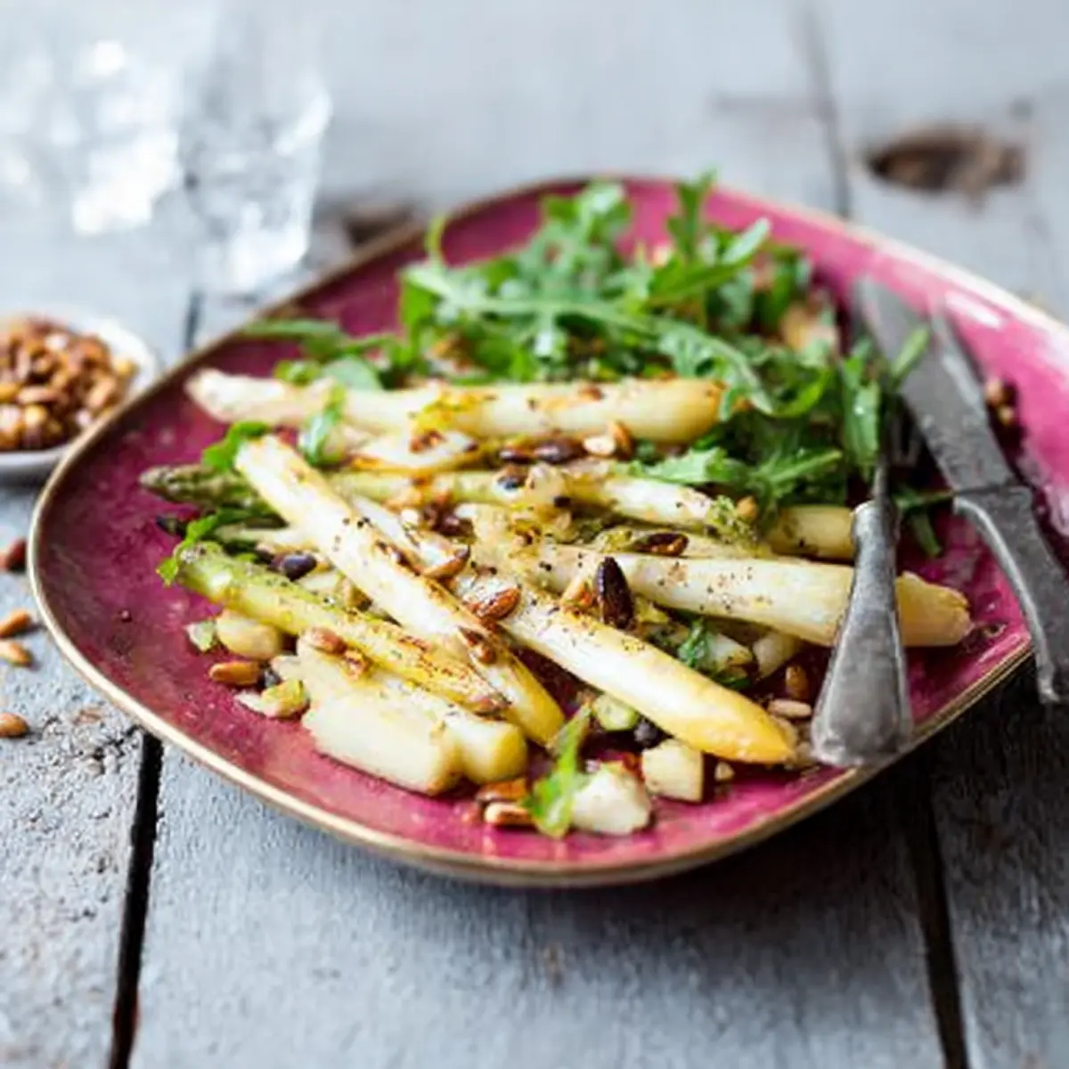 So bringst du gebratenen Spargel mit Pinienkernen auf den Teller