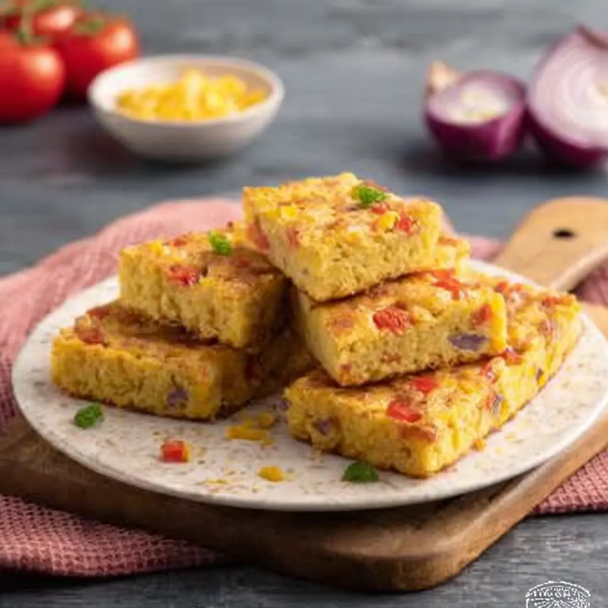 Lass das vorbereitete Gemüse gut abtropfen, vor allem wenn du Sorten wie Zucchini oder Tomaten verwendest – so bleibt der Teig schön saftig, aber nicht matschig. Je feiner du das Gemüse schneidest, desto gleichmäßiger wird der Kuchen und zerfällt nicht beim Schneiden.